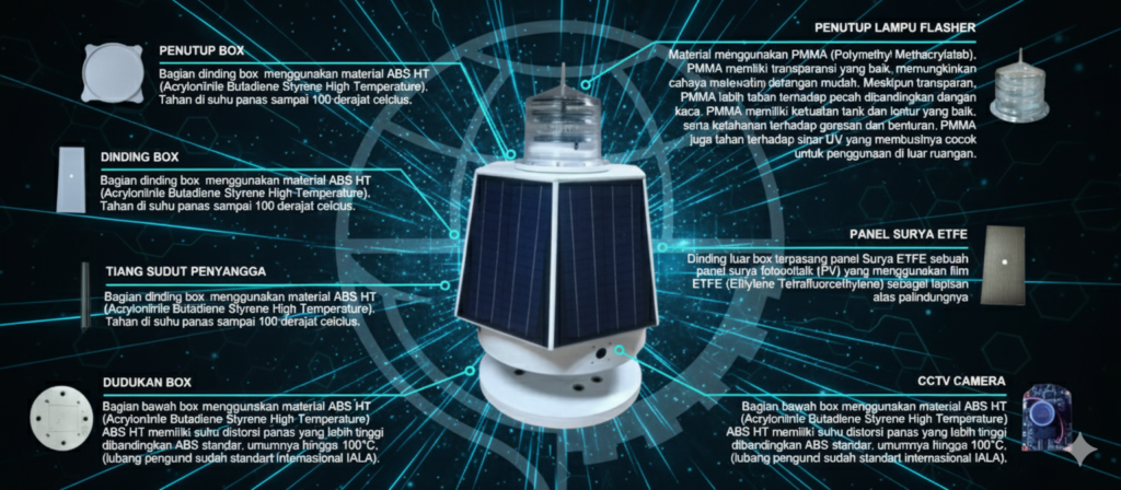 Dilengkapi panel surya ETFE dan baterai LiFePO4 untuk ketahanan energi.